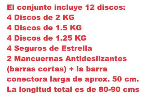 El set es muy completo y de buena calidad, ideal para hacer ejercicio en casa. Es una compra excelente y funcional, con discos y barras que facilitan su uso
